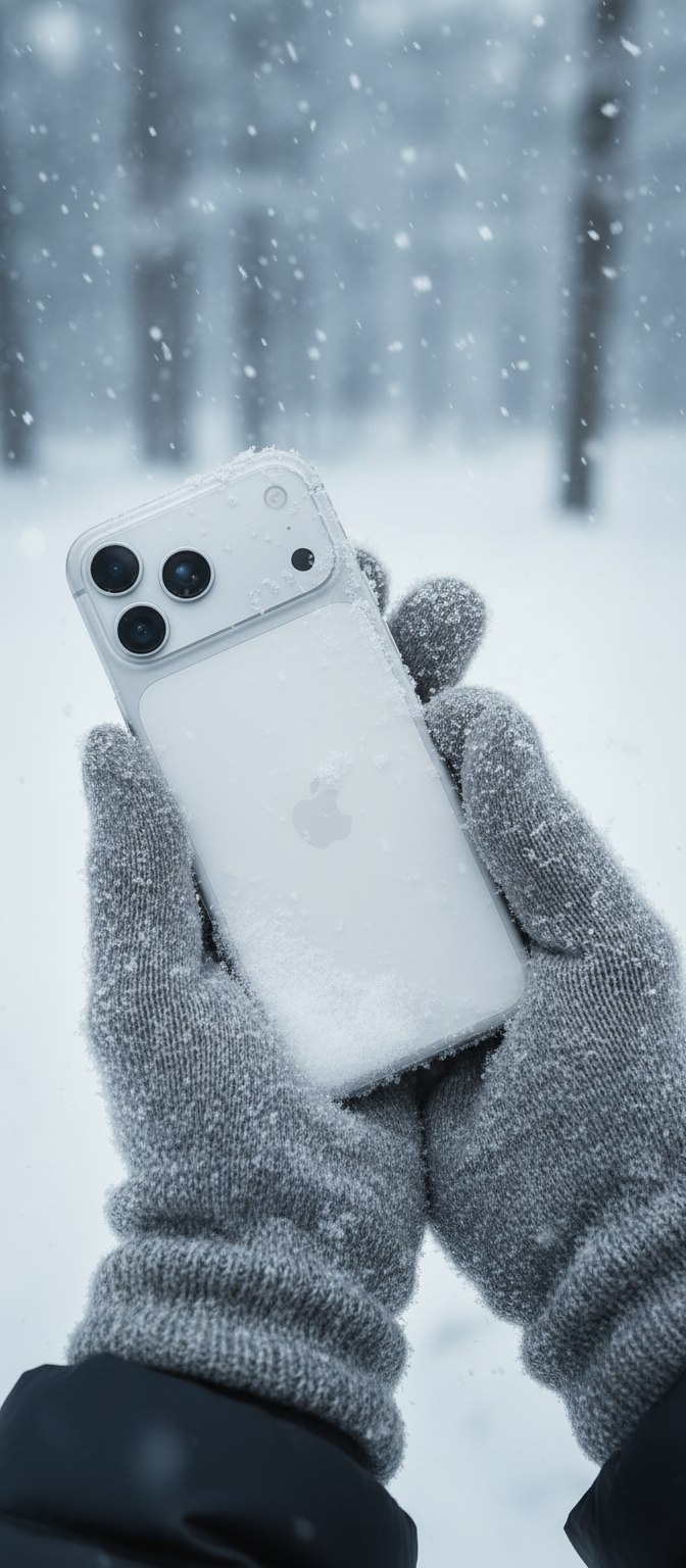 Create an ultra realistic 4K 1:1 image that exactly recreates the visual language, composition, winter atmosphere, lighting, and hand positioning of the inspiration image while adapting the scene to any inserted product. Place the product securely between two winter gloves with the same cupped hand position as the reference, ensuring the product rests naturally inside the hands with a subtle, organic tilt rather than standing perfectly upright. The hands must wrap gently around the product with accurate contact deformation, realistic pressure, correct finger curvature, and visible snow resting on the fabric exactly as in the inspiration photo. The product must interact physically with the gloves, pressing slightly into the soft material with natural shadowing, occlusion, and weight. Preserve the inserted product exactly as it exists in real life with fully accurate shape, proportions, materials, colors, finishes, reflections, transparency, textures, labels, typography, engravings, and all micro-details remaining perfectly sharp, unchanged, and correctly integrated. Do not alter or reimagine the product in any way. Recreate the same cold outdoor environment with a softly blurred snowy background, cool blue-gray tones, diffused natural light from above, and realistic depth separation. Add floating snowflakes with natural motion, size variation, and gentle atmospheric scattering. Ensure the lighting matches the inspiration image with soft specular highlights, subtle color bleeding, realistic bounce light on the gloves, and smooth falloff across the scene. Analyze the product’s packaging for any ingredient-related motifs and incorporate only those visuals as subtle atmospheric particles if they exist. Do not infer or introduce any ingredients not explicitly printed on the label. If no ingredient visuals are present, use only neutral winter effects such as soft snowflakes, cold air haze, frost particles, or micro ice crystals. Maintain the cinematic realism, mood, clarity, lens behavior, shallow depth of field, and environmental physics of the inspiration image while allowing the product itself to change. Ensure the final image looks exactly like a real winter photograph with perfect integration between hands, snow, lighting, and product in 1:1 square.